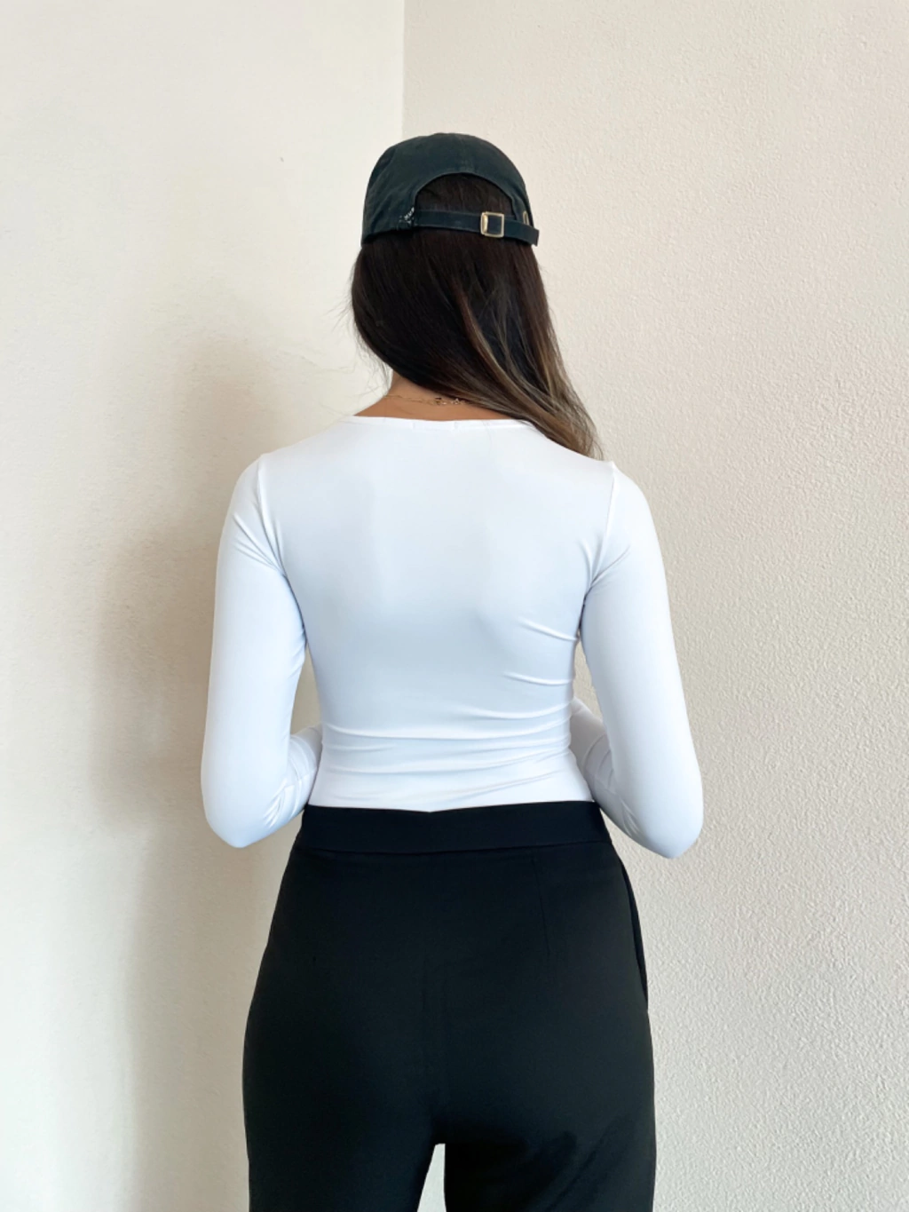 O Body Aura é super versátil, manga comprida, gola redonda, tem uma modelagem que valoriza o corpo, tecido bem firme, com uma sustentação ótima, possui forro na região dos seios, fecho com botão entre as pernas, fácil de vestir e combina com TUDO! O tecido tem elasticidade.