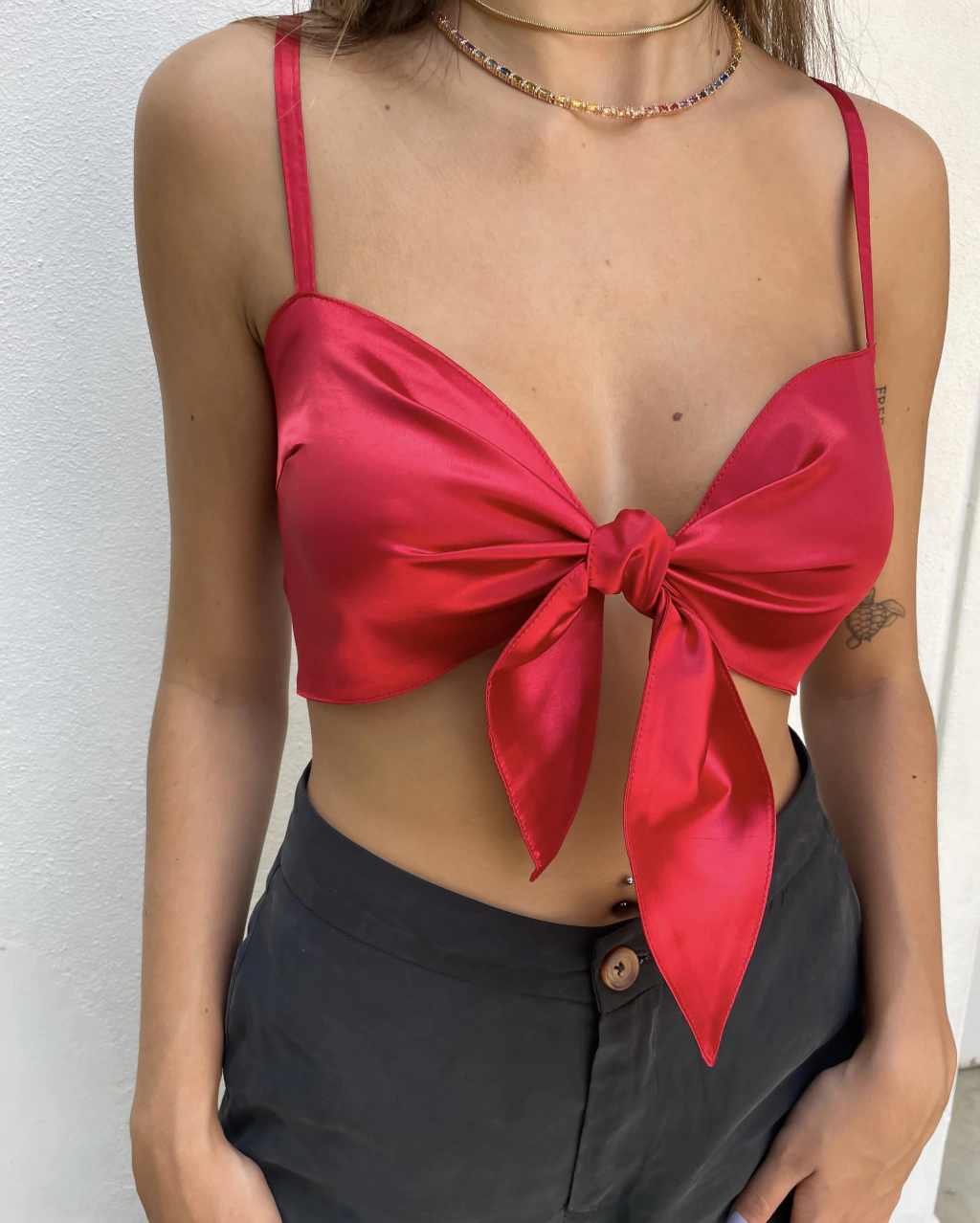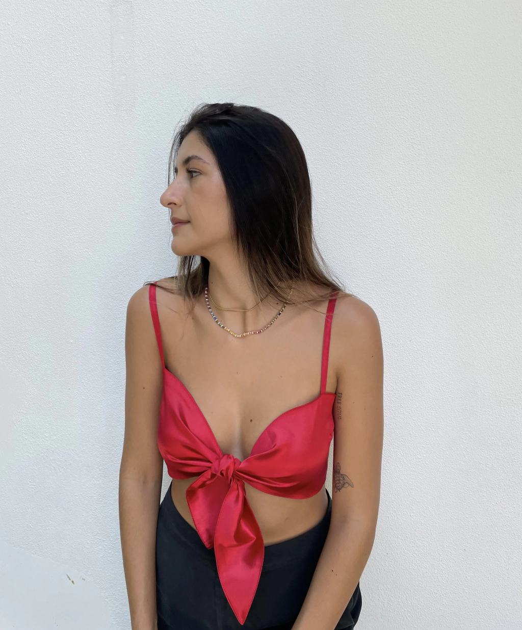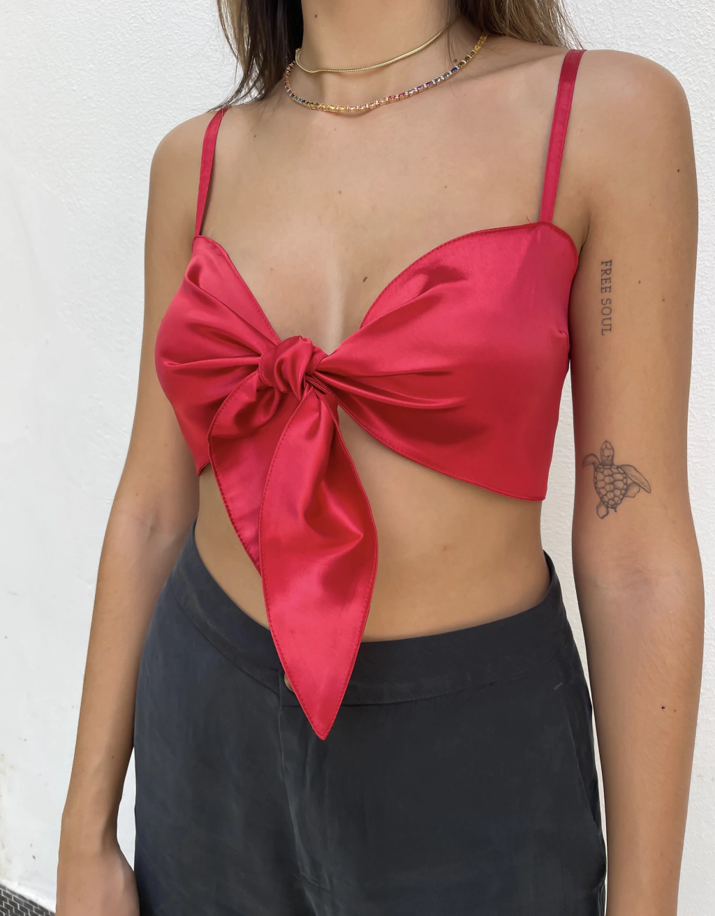 Cropped Paris Vermelho, Possui amarração na frente, podendo regular o busto e o tamanho das alças, tecido duplo e leve. Não marca nada, pode usar sem sutiã tranquilamente. Perfeito para o verão.