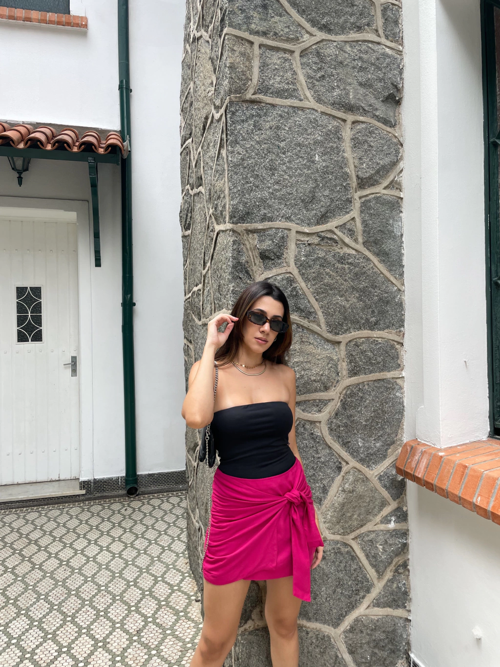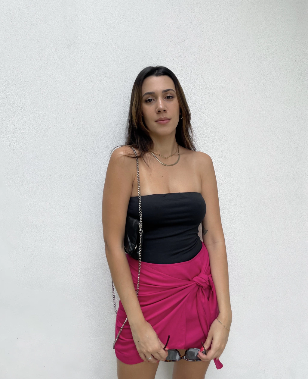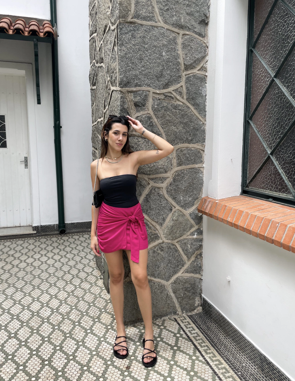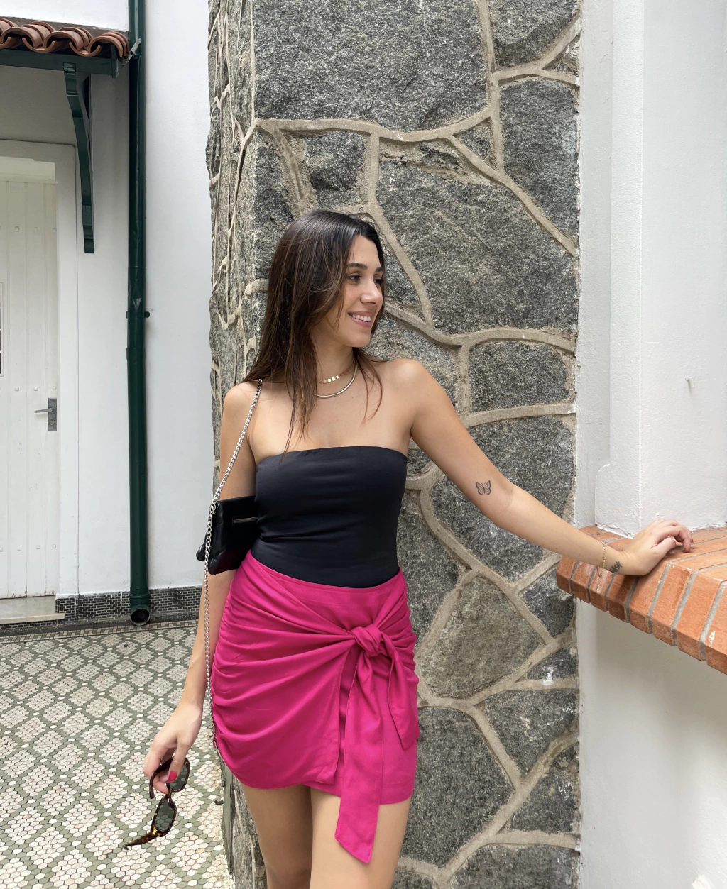 Saia Chloe Pink, uma peça linda, super moderna e versátil. Tecido bem molinho, ótimo para dias quentes. Muito confortável. Possui amarração na frente como detalhe e zíper na parte de trás. Tecido: Viscose Twill Composição: 100% viscose. Tamanho: P- 36/38 M- 40 G- 42/44.