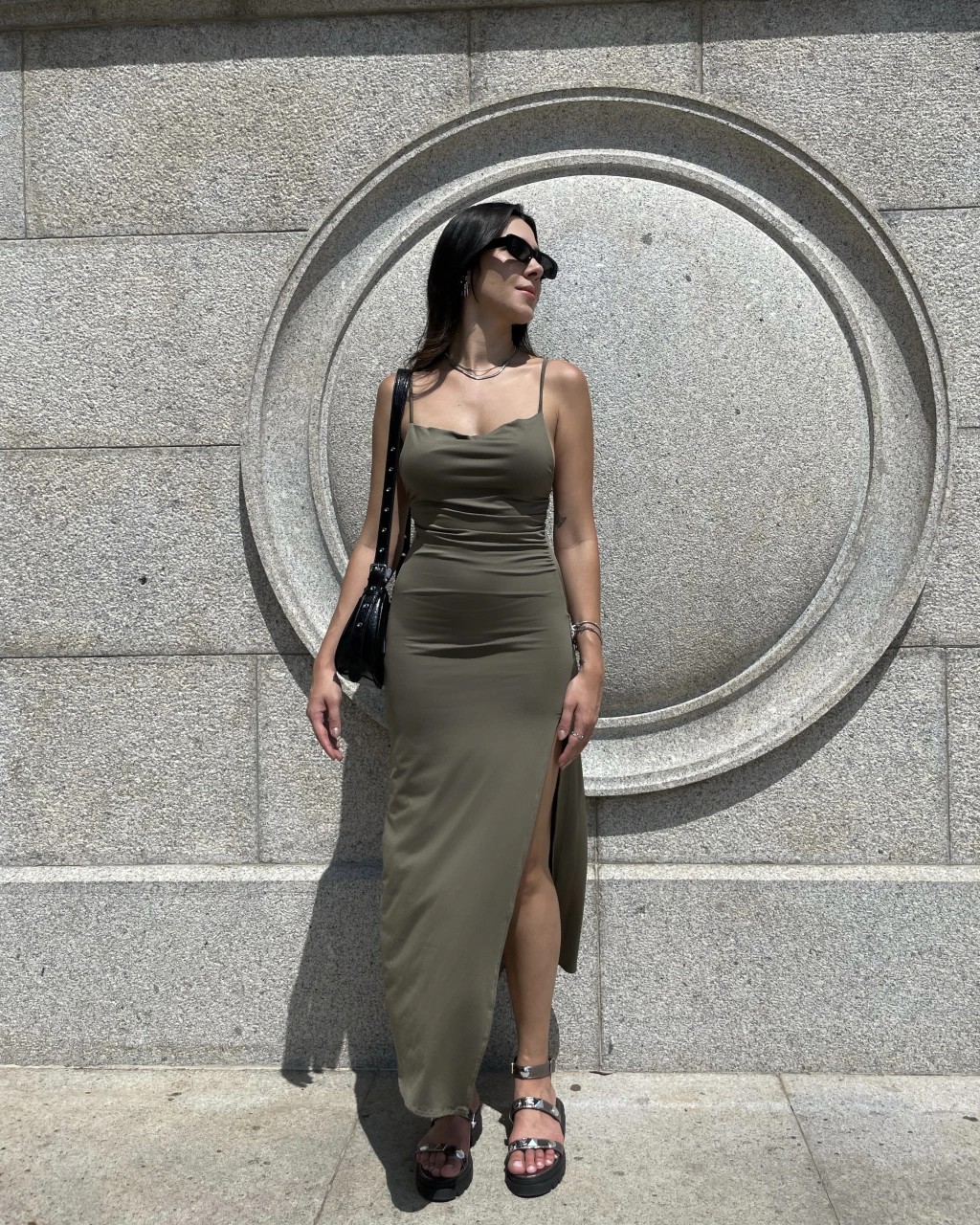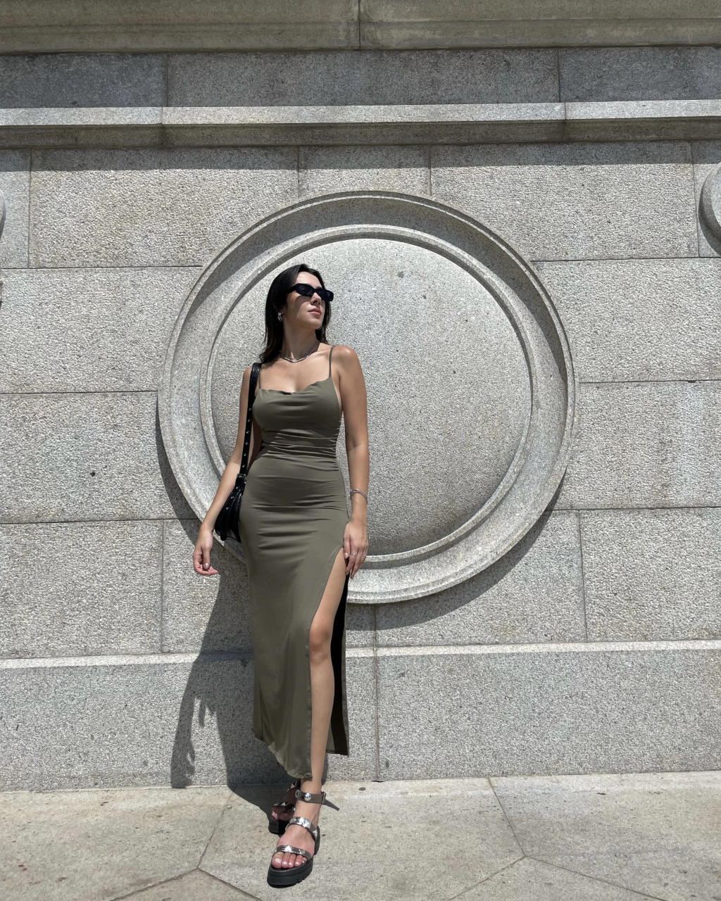 Vestido Mali, disponível nas cores preto, verde, branco, vermelho, nude e cinza. É uma peça que pode ser usada em eventos que pedem looks mais chiques, mas também super combina com o dia a dia. Elegante e sensual na medida certa. Possui alças assimétrica, detalhe franzido na lateral da cintura, gola degagê e fenda lateral. Tecido possui bastante elasticidade.